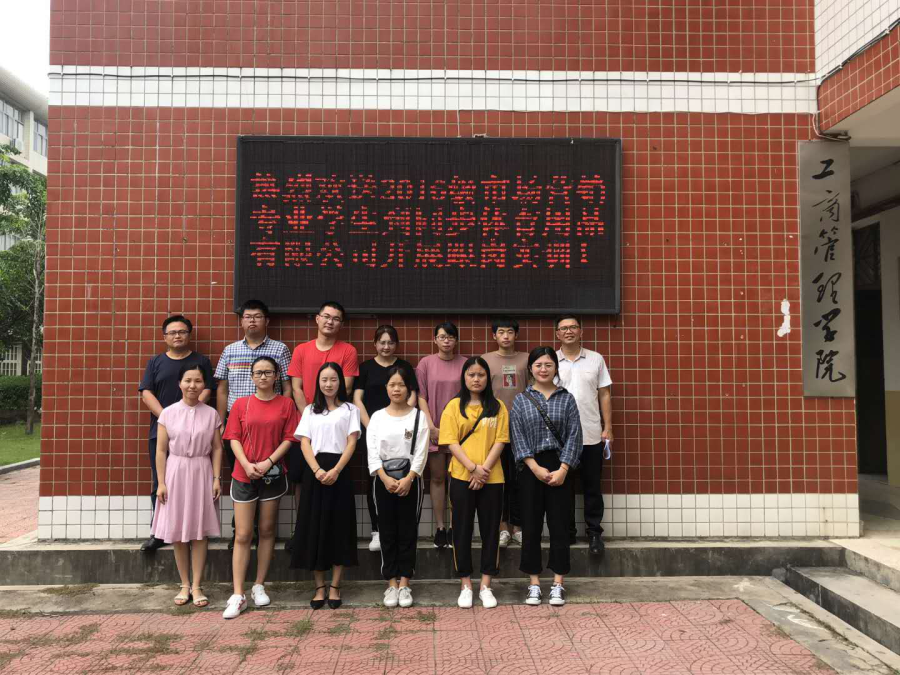 2018年9月5日上午,工商管理学院在25号楼前欢送2016级市场营销专业的10位同学踏上前往同步体育用品有限公司进行为期三个月的跟岗实训旅程。同步体育用品有限公司是特步(中国)有限公司的泉厦分公司,与工商管理学院长期开展校企合作,累计已有52位学生成为特步(中国)有限公司泉厦分公司的储备干部。工商系党总支书记陈凯、系副主任刘伟、教师谢小兰参加了欢送会并与学生合影留念。陈凯书记强调要珍惜到特步公司跟岗实训的机会,继续努力学习提升技能水平,同时叮嘱同学们要注意安全!会后,特步公司派车将10位学生接往特步泉厦分公司开展为期三个月的跟岗实训。
