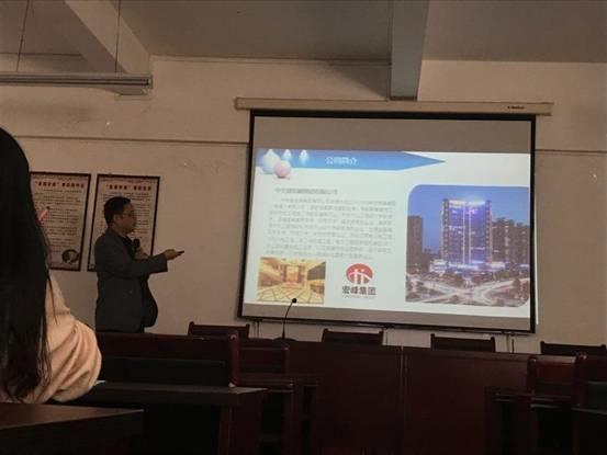 2018年11月27日下午,我系在25#401举办宏峰集团有限公司专场招聘会,出席此次招聘会的有系主任方丰霞、系党总支书记林宗洪以及该公司财务总监蔡明洪和人力资源部刘少娟,我系16级学生 参加了本次招聘会。