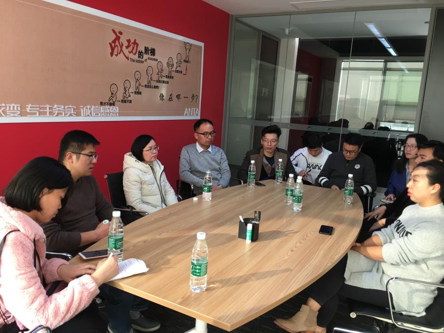 于2019年1月17日下午一点三十分,工商管理系物流教研室主任徐建、市场营销教研室主任黄智萌、电子商务教研室主任李海铭、会计专业教研室主任郑宗旭、实训中心主任洪黎敏、教学秘书潘少君、行政秘书朱晓宇一行七人前往晋江安踏进行调研。
