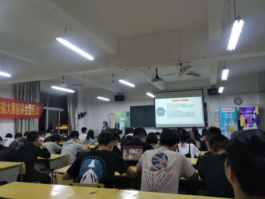 仪式由黄智萌老师主持,首先介绍到场的企业负责人,肯定学生的参赛热情,工商系学生历来都有积极参加销售的优良传统,并简单介绍了大赛的基本要求和流程。接着由娃哈哈公司和莆田农夫食品贸易商行负责人介绍公司产品及竞赛的要求。现场有产品试喝喝提问环节,互动非常热烈,学生们积极报名组队参赛。