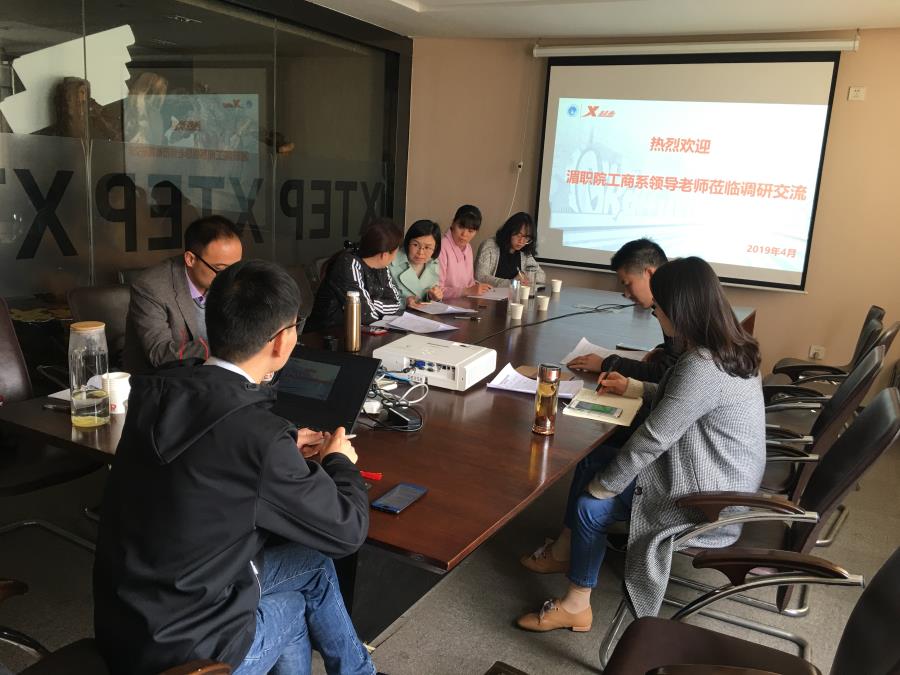 于2019年4月16日上午9点30分我系与特步企业在福州特步洽谈校企合作相关事项,出席会议的有工商管理系主任方丰霞、校企合作办主任徐建、市场营销教研室主任黄智萌、特步福州分公司直营总监林超敬、人资专员林新军、工商管理系市场营销教师陈丽晶、教学秘书潘少君、行政秘书朱晓宇。