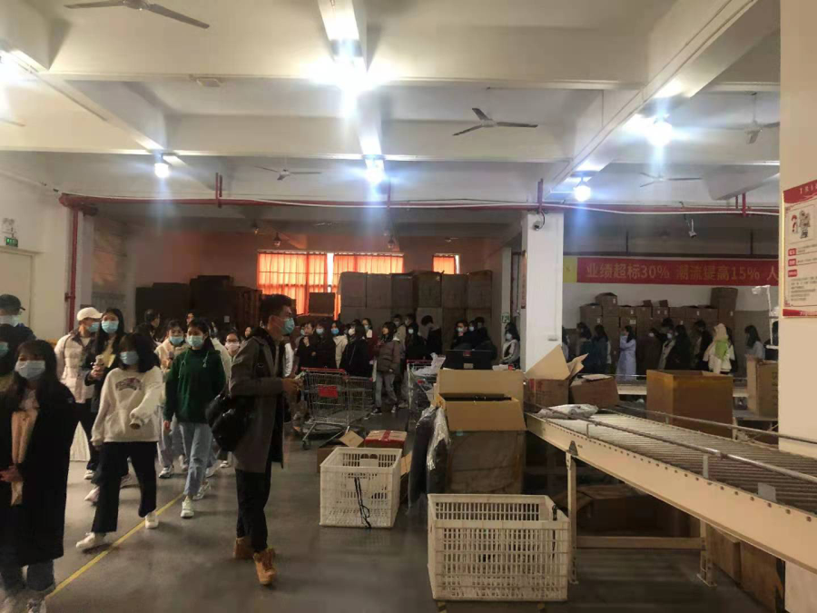 为了让2020级物流管理专业新生对企业物流的组织结构、岗位职责以及岗位能力有更加深刻的认识,帮助新生们增强对现代物流的发展有更清晰的认知,树立学习目标,培养行业荣誉感。物流管理专业于2020年12月15日带领物流201、202班106名学生到才子服饰有限公司物流部认知实训,对企业的电商物流、仓储配送等各方面实地参观认知。