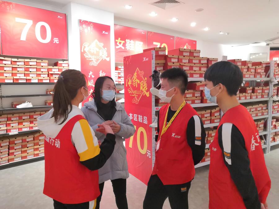 我系教师参观了学生实训情况、工作环境、岗位职责;实训期间营销班学生主要在服饰门店工作,主要负责销售、收银、理货等工作内容,学生们能够全身心投入到工作当中,表现良好。