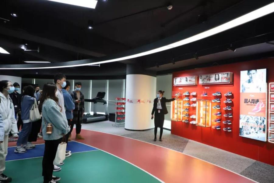 上午9点30分,全员抵达厦门特步总部,特步的活动负责人开始带领我系学生参观特步总部。首先参观的是总部的销售楼层,感受了特步工作人员严谨的工作环境。随后负责人又带领我系参访师生参观了特步的材料研发室,各种各样的材料模型都显示了特步公司的严谨性及产品的精确性。最后又带领了我系参访师生参观了会议楼层,此楼层设有各大城市名称及风格的会议室,别有一番风味。