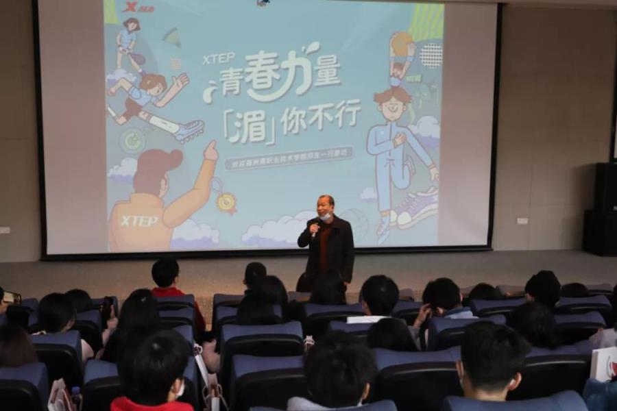 参观完以上楼层,负责人又带领我系参访师生到一楼大礼堂倾听特步文化分享。先是湄职院在特步的实习生们为我们分享了他们在特步实习第三阶段的收获及体会。随后,林宗洪书记上台发表了感想,让我系学生深刻地体会了学为成人的校训。特步的电商总监用他的真实事例告诉我系学生:思考、表达、技巧、执行才是真理。