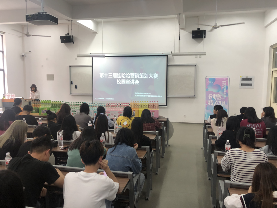 2021年4月13号下午3点,工商管理系在信息楼南104举行了第十三届娃哈哈营销策划大赛校园宣讲会,工商管理系市场营销专业学生参加了此次宣讲会,本次宣讲会由林欣欣老师主持。