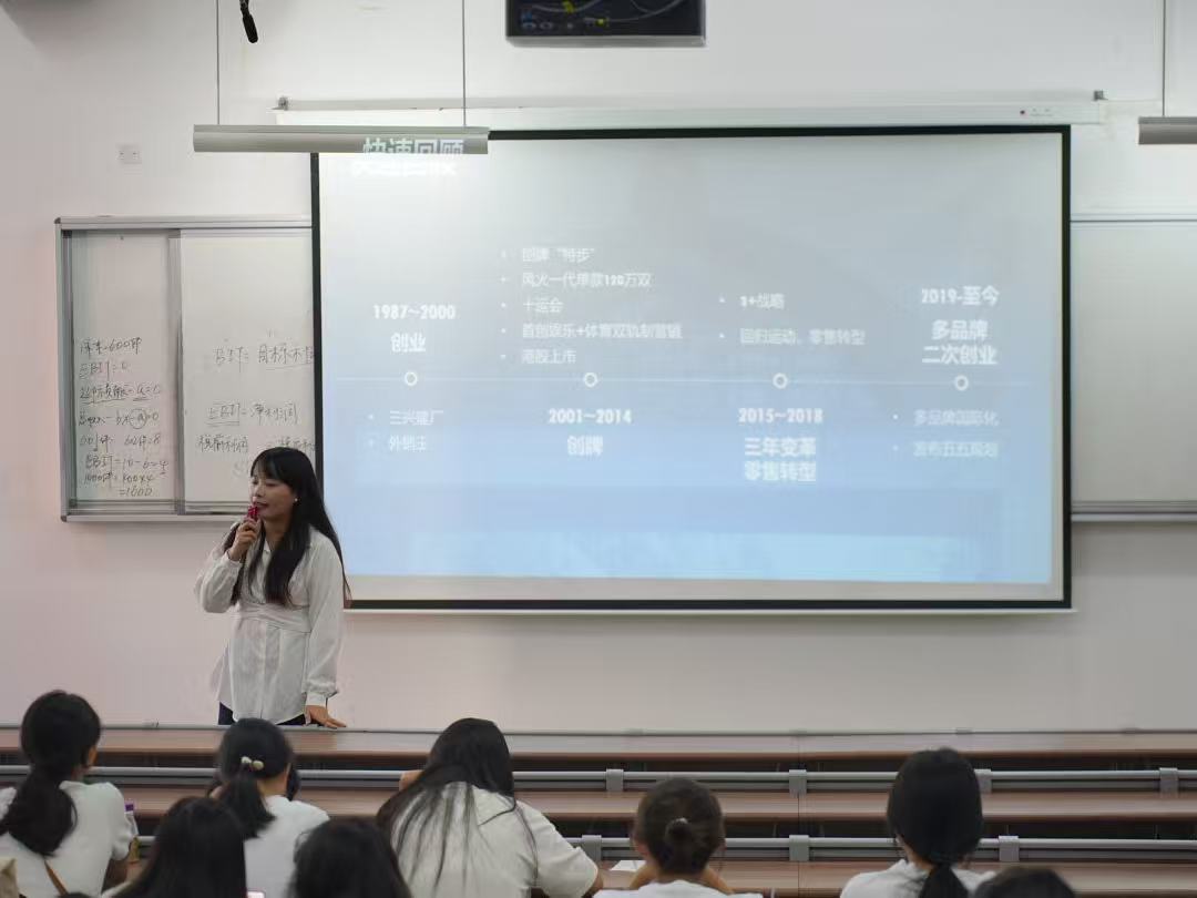 2025年10月16日上午,特步培训经理郭佩莹在信息楼南104教室为市场营销25级学生进行特步品牌深度解析与职业发展路径分享。