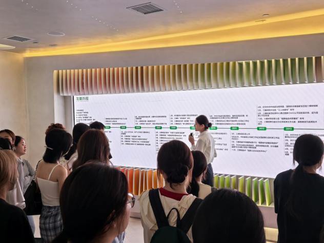 随后,师生团队走进三棵树技术研发大楼。作为国家级高新技术企业,三棵树的研发投入占比、专利转化效率等数据引发学生关注。
