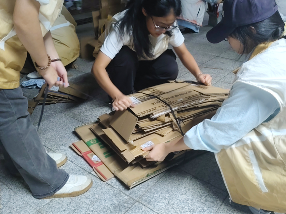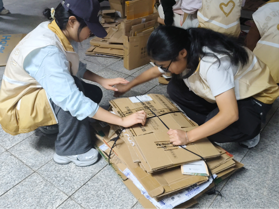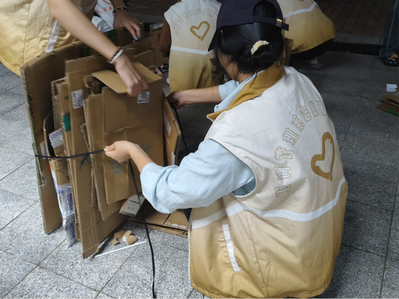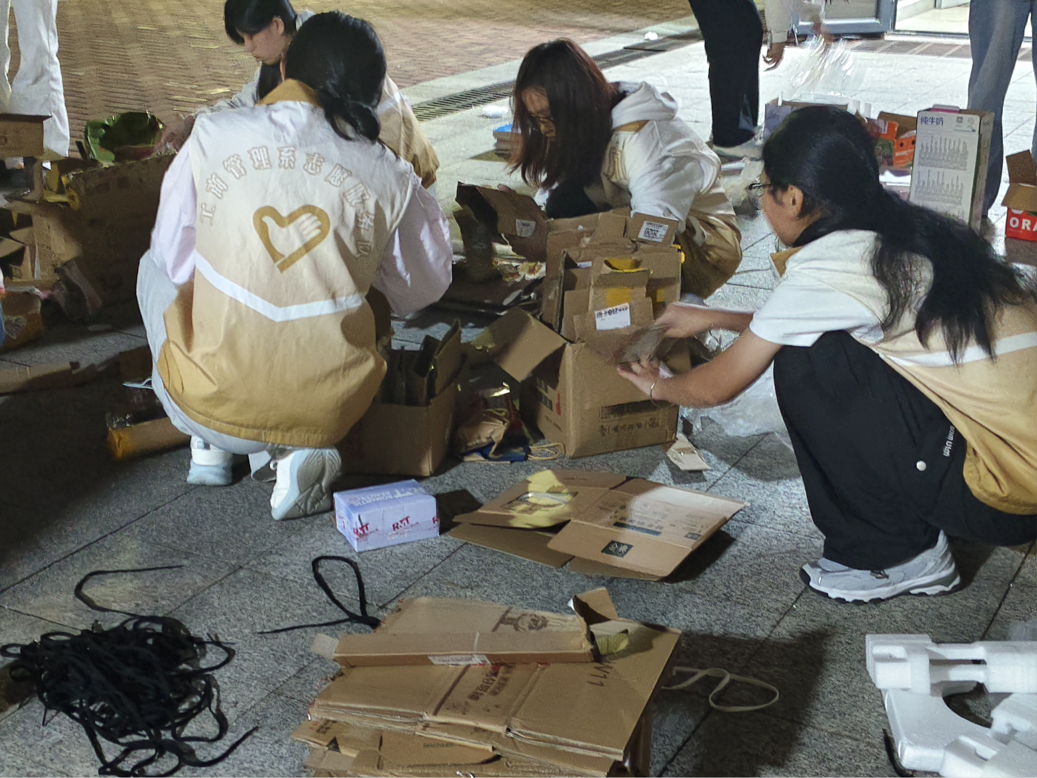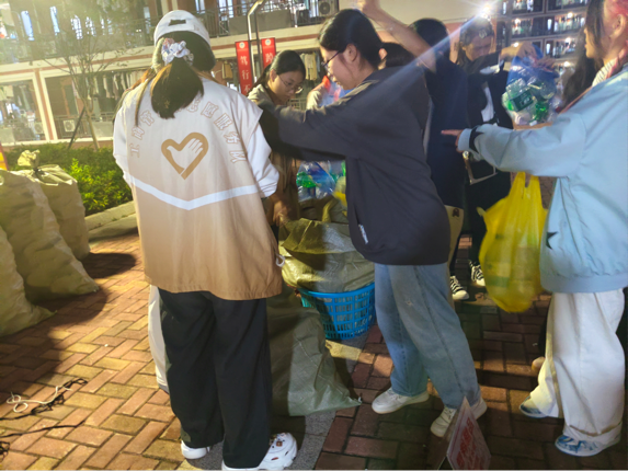 现场身着志愿者服装的身影成为一道亮丽的风景线。他们耐心地向同学们讲解分类要点,并细致指导投放步骤,旨在引导同学们将环境保护意识转化为实际行动。同学们从宿舍带来日常积攒的废纸壳、塑料瓶等可回收物,在亲身实践中掌握垃圾分类的“窍门”。活动现场气氛活跃,同学们用实际行动播撒绿色环保的种子。