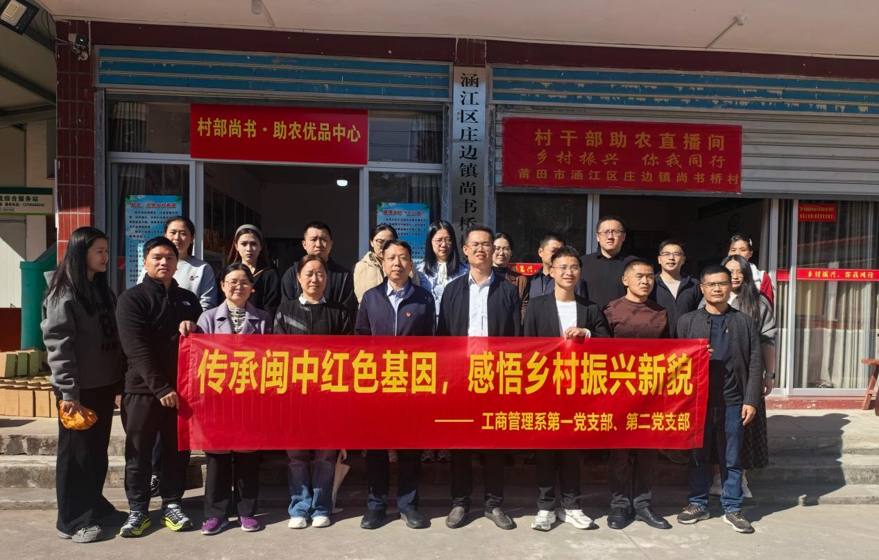 为深化党史学习教育,激励党员在服务乡村振兴中践行初心使命,2025年12月24日,工商管理系第一、第二党支部全体党员前往涵江区庄边镇尚书桥村,开展“传承闽中红色基因 感悟乡村振兴新貌”主题党日活动。活动将红色教育与专业实践深度融合,通过沉浸式参观学习与实地产业调研,引导党员坚定理想信念,思考专业赋能路径。