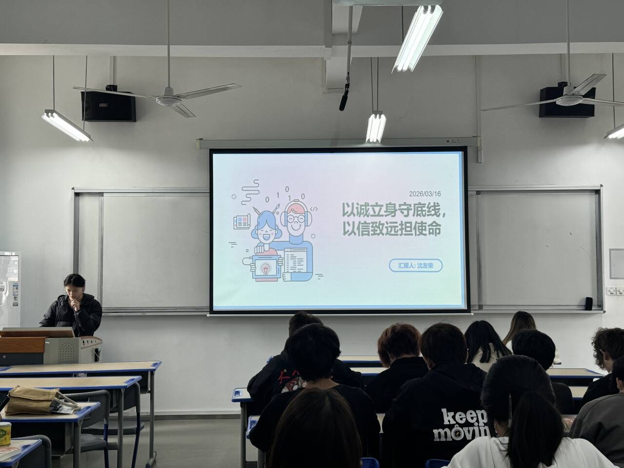 近日,工商管理系面向全体师生组织开展了“以诚立身守底线,以信致远担使命”2025-2026学年第二学期第四周主题班会活动。本次活动由各班辅导员、班主任及团支书共同策划组织,旨在强化诚信意识,筑牢道德底线,营造风清气正的校园学风。