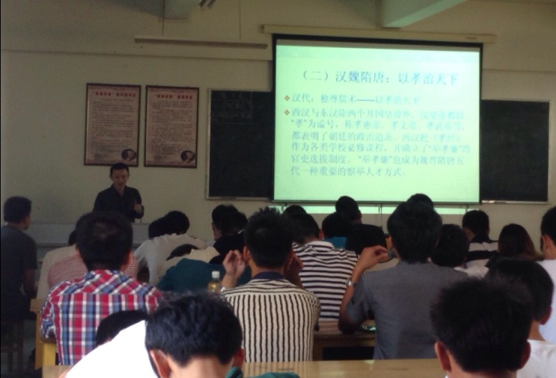 2013年10月15日下午,我系以“中国孝文化”为主题的道德讲堂于25号楼401正式举行,本次讲堂由学院基础部思政教研部郑庆权老师主讲,出席讲堂的有辅导员杨扬以及我系各班级学生代表。