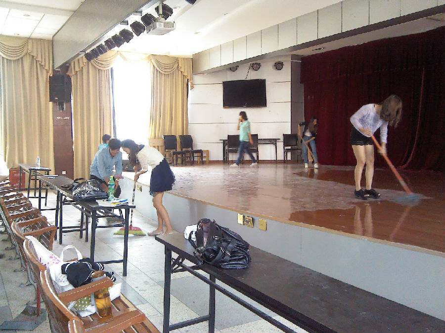 本次会场布置工作促进了我系同学间的友谊,更体现了我系同学团结合作的良好精神。同时也祝愿我院第二届一次教代会暨工代会举办圆满成功。