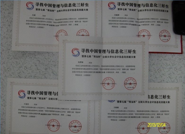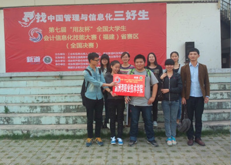 近年来,随着学院的发展壮大,各专业建设不断迈上新高,各专业的人才培养水平和成果也日益显现。2013年11月23日上午,在我系会计专业负责人刘伟、谢双双老师的带领下,会计专业张烨彬、于美芳、关颉、吴淑娇方晓娴、郑国、郭彬彬、许璐莹8位同学于福州农业职业技术学院参加了第七届“用友杯”全国大学生会计信息化技能大赛。