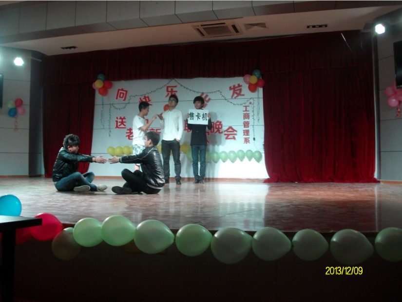 2013年12月9日晚,我系送老迎新联欢晚会于17#201小礼堂激情开幕!出席本次晚会担任嘉宾的老师有系主任蔡元忠、书记陈凯、副主任方丰霞、现代教育中心主任赵德山、系分团委书记杨扬、机械系分团委书记林俊、机械系辅导员林伟岭、院团委老师蔡海雄。