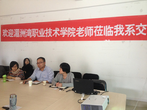 经济贸易系主任刘志惠以及国际商务专业全体教师热情接待了两位教师国际商务教研室主任江剑敏就国际商务专业的省示范专业建设给两位教师做了详细的沟通和交流,会后报关专业的包娟老师带领两位教师参观了经济贸易系的省级财政支持的国际商务专业实训基地和中央财政支持的物流管理专业实训基地。
