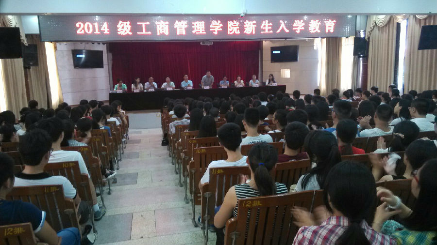 911下午,工商管理学院在17#201召开2014级新生入学教育大会,会议由党总支副书记陈志君主持,参加会议的有我院主任蔡元忠、党总支书记陈凯、副主任刘伟、营销教研室主任黄智萌、物流/商务教研室主任徐建、辅导员洪慧贞、实训中心主任林露华、学生分团委书记杨扬、社区辅导员王志挺以及我院2014级新生。
