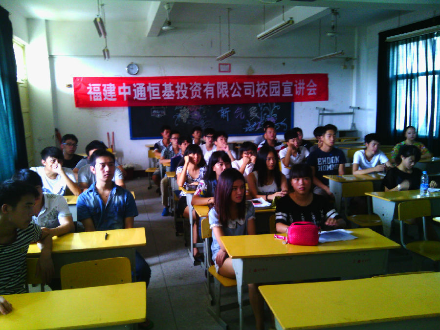 912上午,工商管理学院举行中通恒基投资有限公司校园宣讲会,宣讲对象为市场营销12级全体同学。参加会议的有总裁办主任钟志忠、综