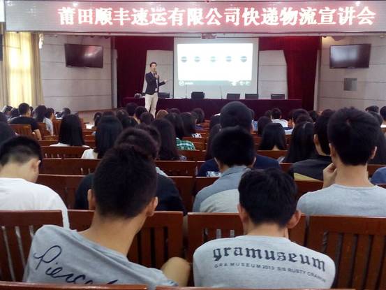 10月28日下午在17#201,工商管理学院举行莆田顺丰速运有限公司快递物流宣讲会。参加会议的有莆田顺丰速运有限公司人力资源部主任陈晓阳、招聘主管孙经理以及我院物流教研室主任徐建与实训中心主任林露华。