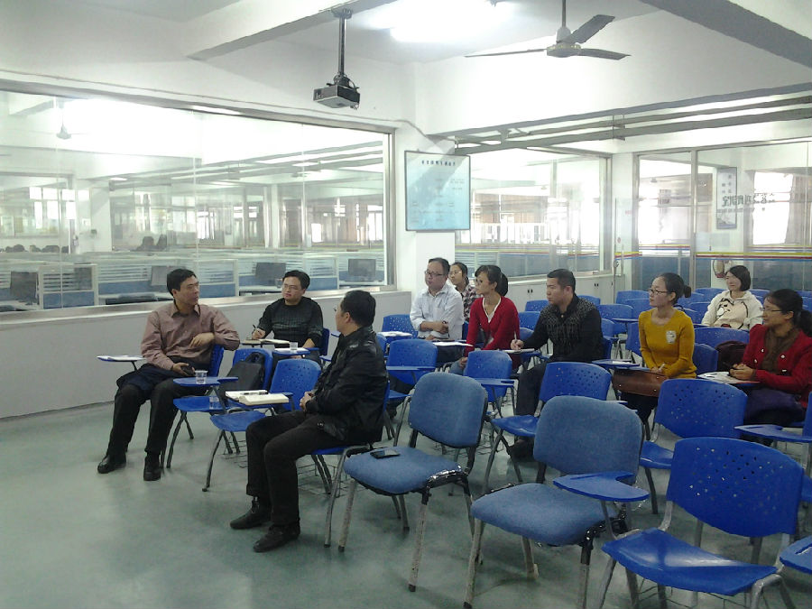 2014年11月14日上午9:00彭院长到工商管理学院参加教学研讨会,会议在工程实训楼5楼商务谈判室进行,工商管理学院全体教师参加了本场教研会议。