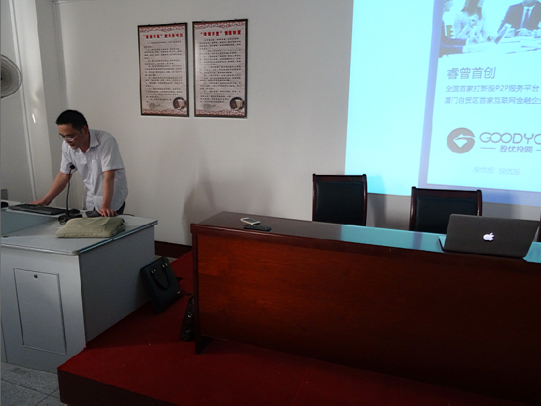 宣讲会上,黄总经理首先以PPT的形式,介绍了厦门睿资投资管理有限公司概况,包括公司企业文化、管理架构、人才需求、公司待遇等方面内容。其次,详细说明此次需要招聘的岗位——投资顾问,胜任此职位需要的基本要求。最后,对此次招聘有兴趣的同学,留下来填了一份性格测试表,黄总经理在同学填写时,更加详细的说明投资顾问是怎样线上线下投资操作,并邀请同学们可以去往莆田万达工作地点进行参观。