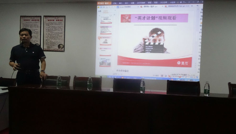 2015年9月5日晚,我院召开13级营销教学实习动员大会,复茂食品公司管理顾问邹飞与英才计划”中的班主任李巧娟老师以及我院党总支部书记陈凯、副主任方丰霞,总辅导员杨剑辉、营销教研室主任黄智萌出席动员大会。
