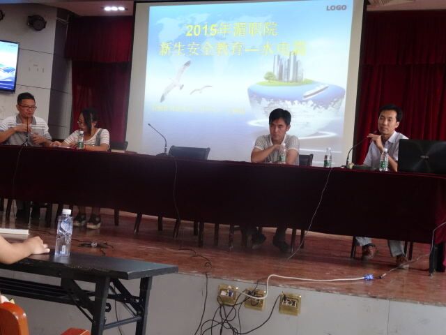 9月7日下午,我院在17#201举办2015级新生入学教育大会之社区·安全·教育的活动,出席会议的有成教部主任林志谦、保卫科科长蔡国民、后勤管理中心水电中心负责人王仲宙老师以及社区辅导员朱晴,会议由陈凯书记主持。