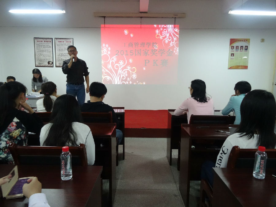 切实做好工商管理学院关于2015年国家奖学金的评审,我院于10月13日晚在25号楼401会议室举行国家奖学金评选大会。据悉,此次大会特组成师生评委团以保证评选结果公平、公正、公开。参加此次评审的有副主任方丰霞、刘伟、思政辅导员、课任老师共10名,以及来自我院各班抽签产生的10名学生评委。此外,还邀请了学工处副处长林俊、信息学院书记郑健、机械学院书记许志敏,我院主任蔡元忠,党总支书记陈凯作为观摩团。