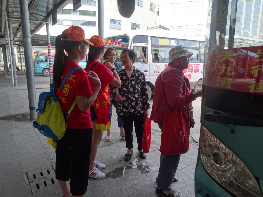 在校车到达莆田市汽车站之后, 23位志愿者活跃在车站的售票厅、候车室、交通路口,有的导引旅客进出站,有的帮助旅客购、取票,有的帮助旅客搬运行李,有的帮助维护车站秩序,以实际行动诠释着“奉献、友爱、互助、进步”的志愿者精神。