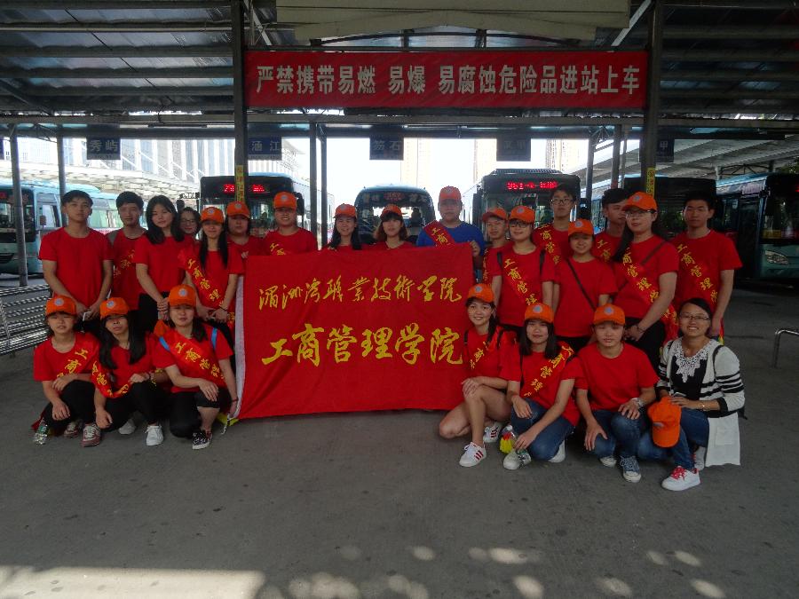 2016年5月17日下午,工商管理系分团委负责人陈丽晶带领24位志愿者前往莆田市汽车站开展志愿者活动。