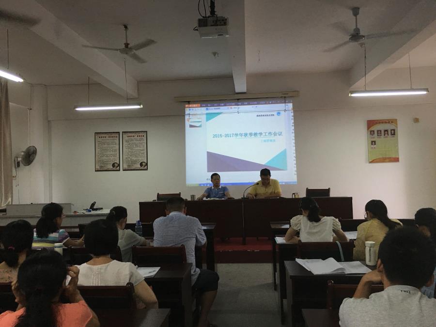 8月26日上午,工商管理系在25号楼401室召开2016—2017学年秋季期初教学工作会议。工商管理系主任蔡元忠、党总支书记陈凯以及全体教工参加此次会议。会议由陈凯主持。