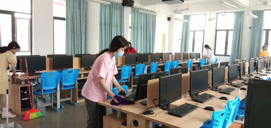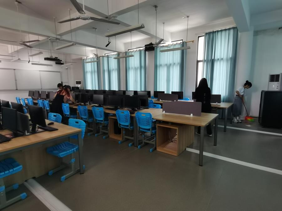 为培养学生们树立“文明之风,从我做起”的文明意识,此次“弘扬劳动精神,谱写文明新篇”活动主要是在教学楼公教二进行卫生打扫。活动前期需先通知各班劳动委员组织同学进行所属班级区域的卫生打扫;每个打扫的班级必须在负责的每间实训室留一位同学,负责绿化的班级留两位同学,等待评比;每周二中午一点五十分由卫生委员进行检查,并进行打分,之后根据期末汇总排出各班成绩。