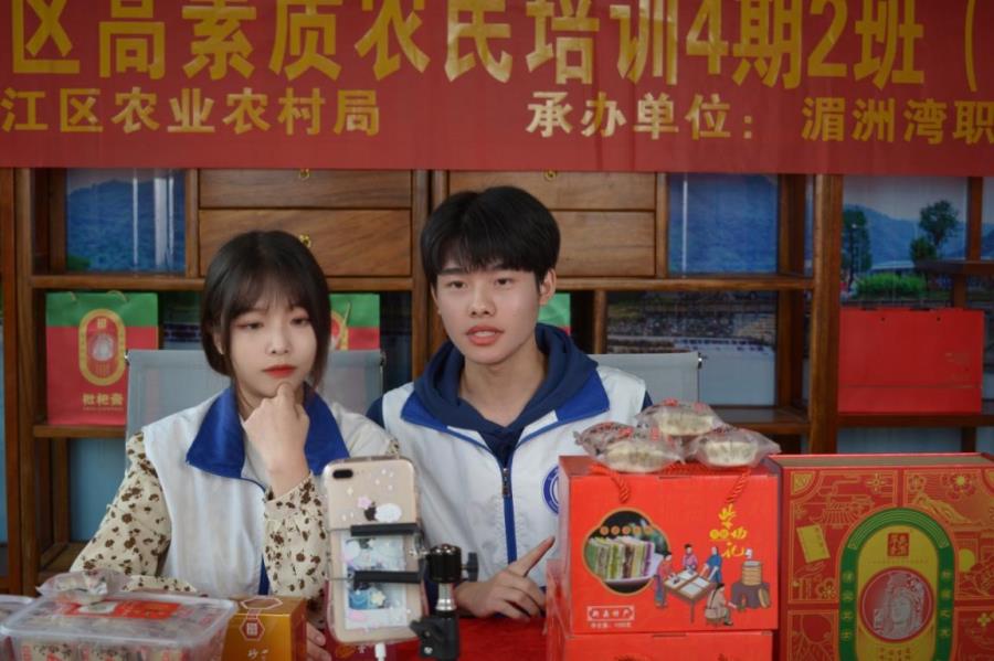在助农带货直播间里,电子商务专业的学生担当起了带货主播,同学们配合默契为线上直播间内的顾客们讲述着张洋乡村的著名特产——新县方糕和枇杷膏。对于此次直播活动来说,不仅仅帮助张洋乡村民解决产品的销售,也锻炼学生直播带货的技巧和能力。