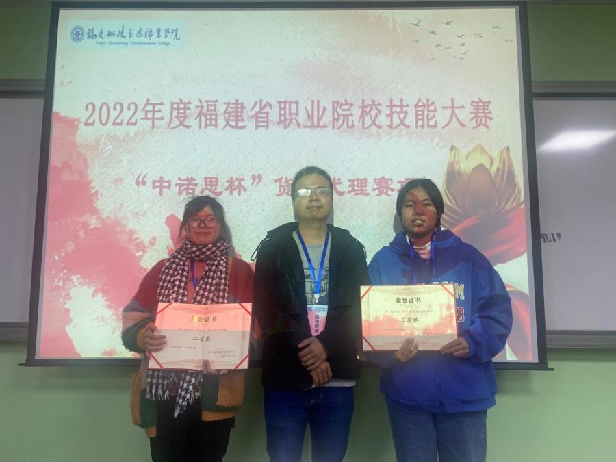 本次货运代理技能赛项共有40名来自全省不同院校的学生参赛。经过一天激烈的比拼,我系学生戴玉珍同学获得二等奖,卢烨铃同学获得三等奖。