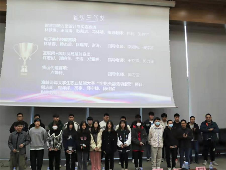 本次大会由副主任徐建主持。会上,首先由方丰霞主任对李智仁处长、各参赛项目选手老师及系部团队表达了衷心的感谢,同时进行赛事情况总结。而后由黄智萌副主任宣读获奖名单并进行表彰。随后由优秀指导老师陈丽晶和优秀学生代表李佳俊分享获奖感悟与经验。最后由教务处处长李智仁进行重要总结发言,希望工商管理系能争取在明年的各类职业技能大赛中再创佳绩,继续为湄院增添光彩。