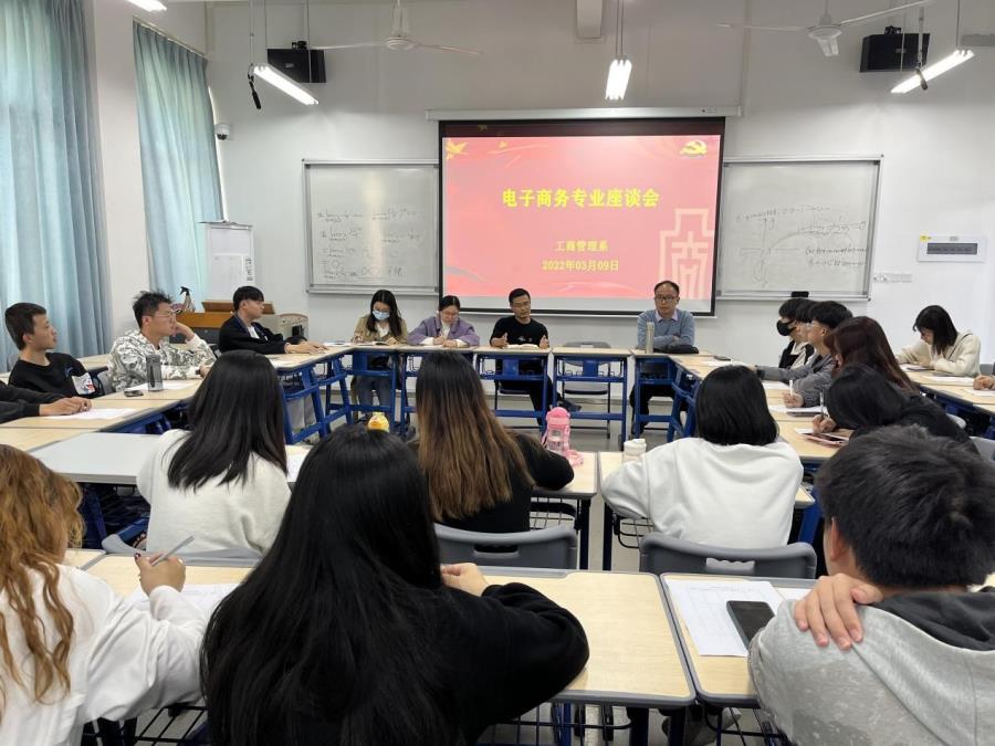 工商管理系与上海赋氧合作办学共建电商专业,开学伊始,为了进一步倾听学生心声,了解学生在学习和生活中遇到的问题,以便下一阶段教学管理进行改善。工商管理系于202239日在公教楼2#201召开了20级电子商务专业座谈会。工商管理系党总支副书记许志敏,副主任黄智萌,副主任徐建,辅导员以及20级电子商务学生代表参加了会议。