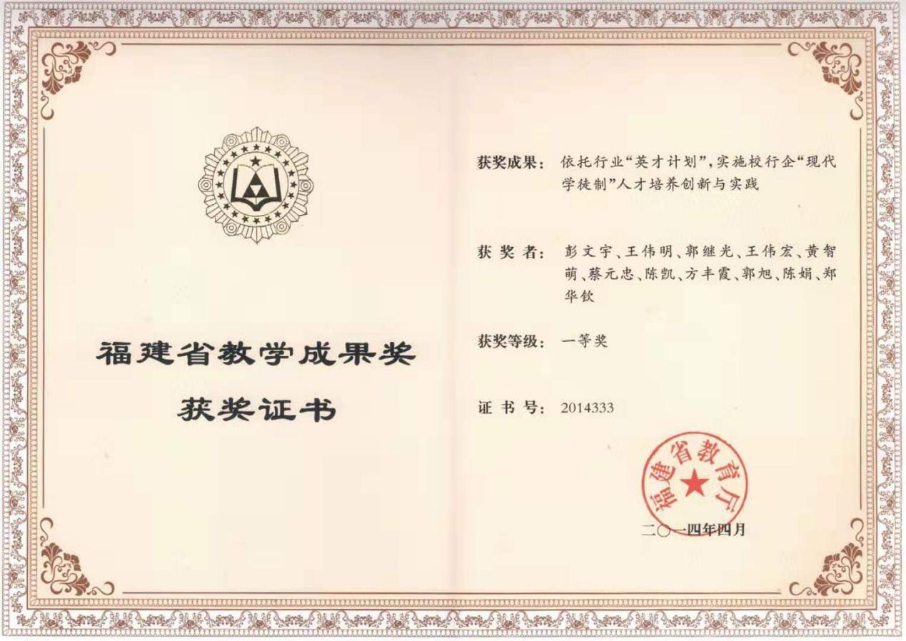 图1 2014年荣获福建省教学成果奖一等奖