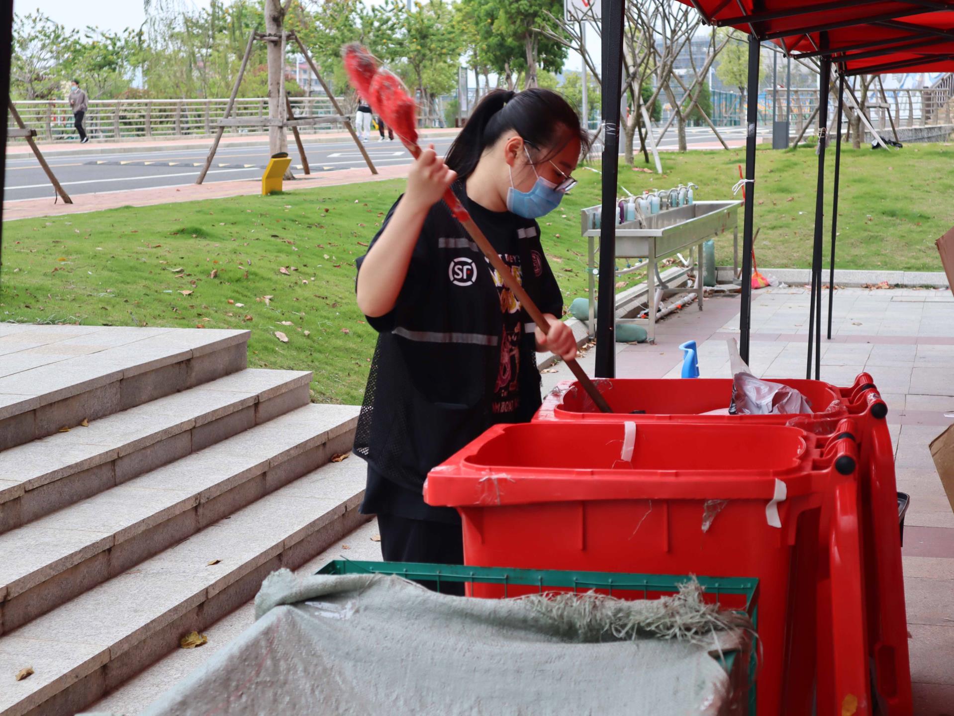 为了确保疫情防控工作安全、有序,我系每日招募26位志愿者,负责物流车和快递第一轮消毒、监督口罩佩戴、体温测量、快递现场拆包消毒等流程。“同学,请保持一米以上距离。”“同学,请戴好口罩及手套再进入快递站”……烈日下,在快递站入口,志愿者们维持来往人群的秩序,提醒和劝导同学们做好个人防护。而在快递站出口,志愿者们全程佩戴好医用口罩和手套,在户外通风良好的地方用酒精对快递外包装进行全面喷洒消毒后交给同学们,同时引导同学们取件后不带走外包装,在包裹拆件区拆卸包装,做好手部消毒及垃圾分类后再离开快递站。在场同学们也保持防疫自觉性,没有丝毫懈怠和侥幸心理,严格遵守防疫准则,积极配合志愿者们的工作。