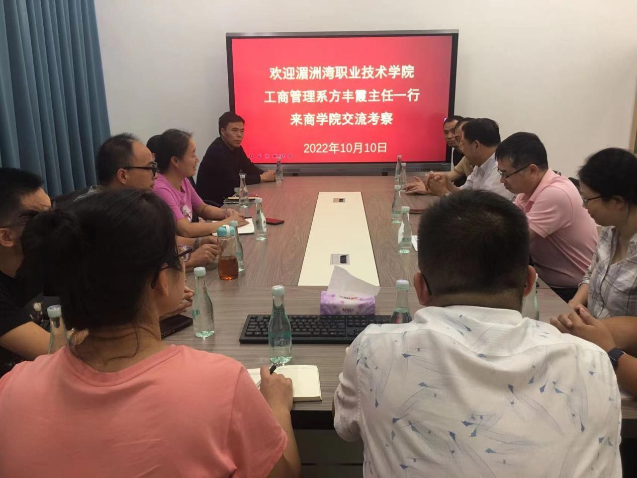 20221010日下午,工商管理系主任方丰霞携副主任徐建、黄智萌、会计教研室主任郑宗旭、电商教研室主任李海铭、营销教研室主任林欣欣、跨境电商教研室主任郭力菠、
