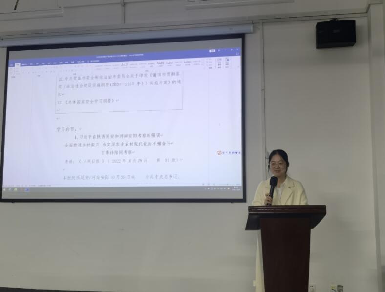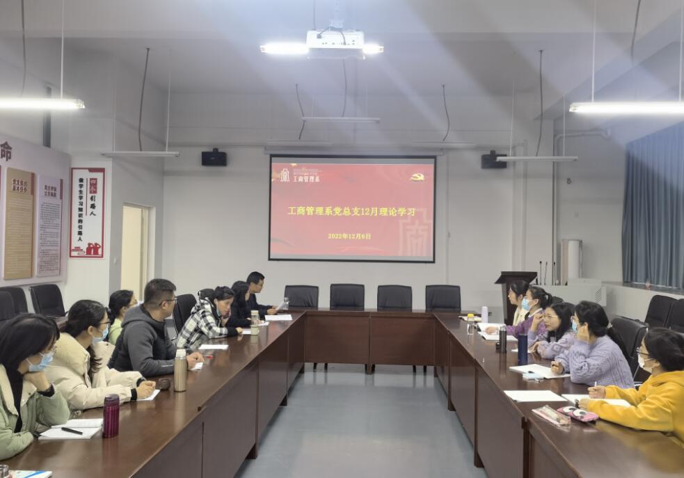 12月6日下午,工商管理系党总支于工商楼南301召开12月政治理论学习会。工商管理系全体党员参会,第二支部宣传委员陈雅晴领学。
