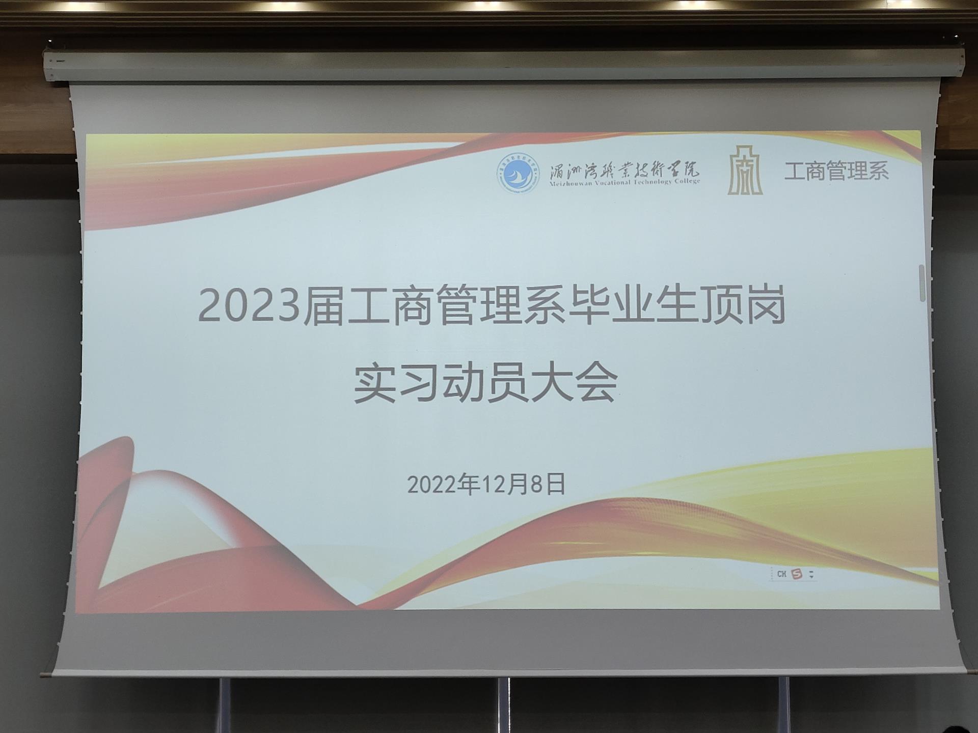 为了让毕业生加深了解岗位实习的意义,熟悉岗位实习所需相关材料要求,我系于12月8日在信息楼330报告厅举行工商管理系2023届毕业生顶岗实习动员大会。参加本次大会的有系主任方丰霞、党总支副书记许志敏、系副主任黄智萌和辅导员刘忠德以及23届毕业生,系副主任徐建主持。