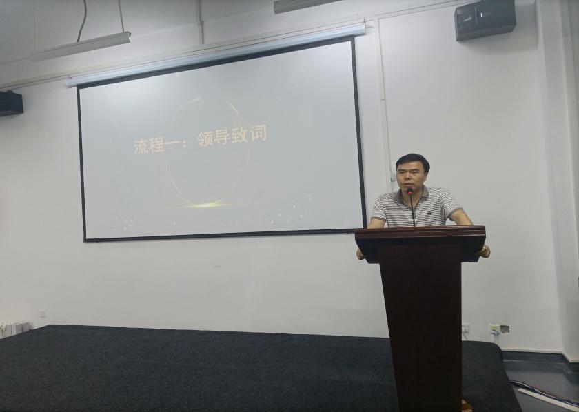 会议首先由教务办主任郑宗旭老师致辞,教务办主任郑宗旭老师在致辞中讲述了关于赛项的总结以及工商系ERP协会现状及发展。