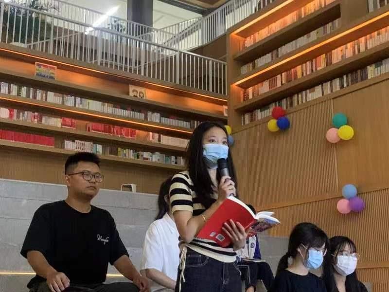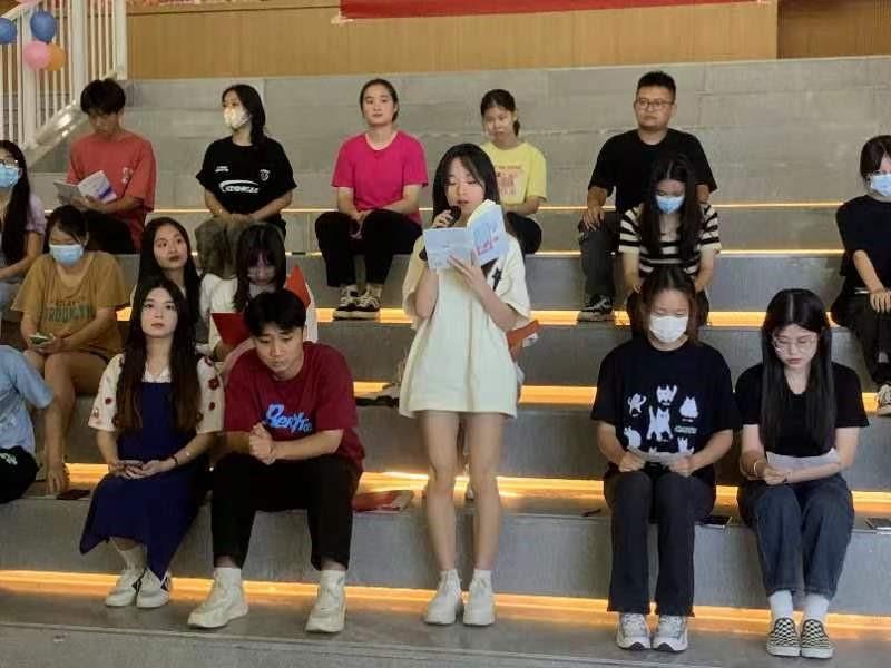 活动在观看《闽宁新貌》视频中拉开序幕,闽宁镇来历和今昔对比吸引了同学们的目光。随后,黄智萌老师简要地介绍了本书主要内容,并诵读书籍节选《“西海固”到“金沙滩”,我们是亲历者》,为学生讲解闽宁镇20多年来脱贫攻坚的奋斗路,带领学生感受闽宁蝶变背后的故事。之后,由学生郑秀文诵读了谢兴昌的回信《喜讯捎给总书记》。接着,在场的8位学生接力诵读书中习近平总书记的“金句子”,结合各自的工作和学习交流读书感悟和心得体会,在思想碰撞中增长知识,凝聚力量。最后,黄智萌老师做总结发言,她勉励同学们,作为新时代的大学生不仅要做新时代的读书人,在深学笃学中感悟新思想,树立坚定的理想信念,让奋进成为青春最美的姿态;还要做正能量的宣传者,讲好大国与小家、领袖与百姓的血肉联系的故事,凝聚起家国同奋进,共圆中国梦的磅礴力量。
