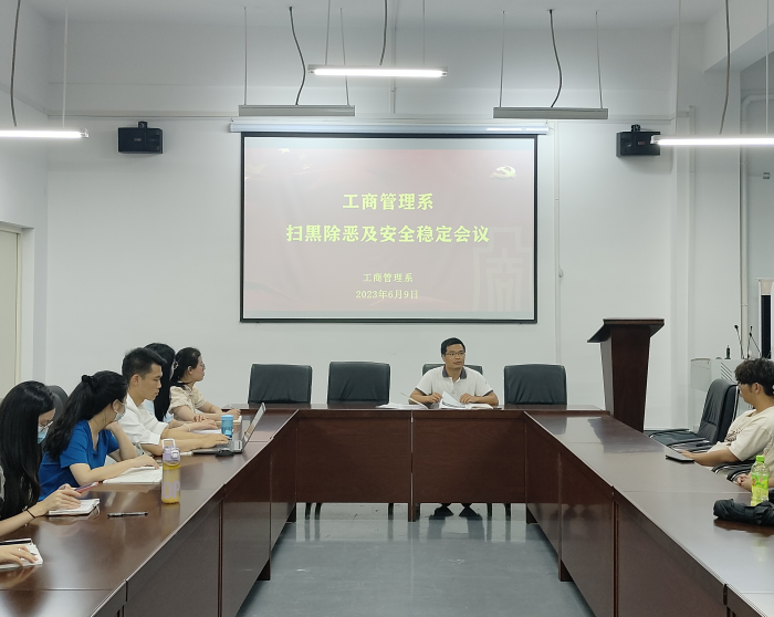 为扎实推进校园扫黑除恶工作常态化,抓实抓牢校园安全稳定各项工作,我系于69日在工商楼南301召开扫黑除恶安全稳定会议。工商管理系党总支副书记许志敏、系部辅导员以及学生代表参加了本次会议,会议由许志敏主持。