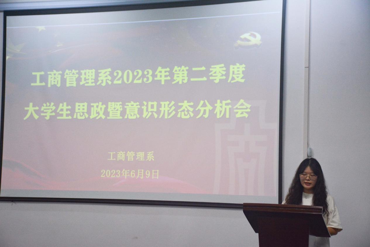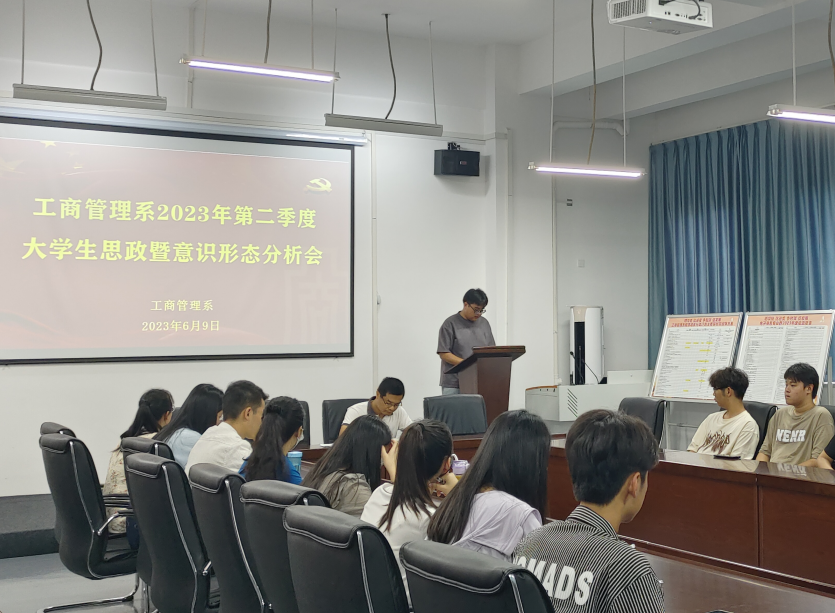 2023年6月9日,我系于工商楼南301召开第二季度学生思想政治暨意识形态分析会。工商管理系党总支副书记许志敏、系部辅导员以及学生代表参加了本次会议,会议由许志敏主持。