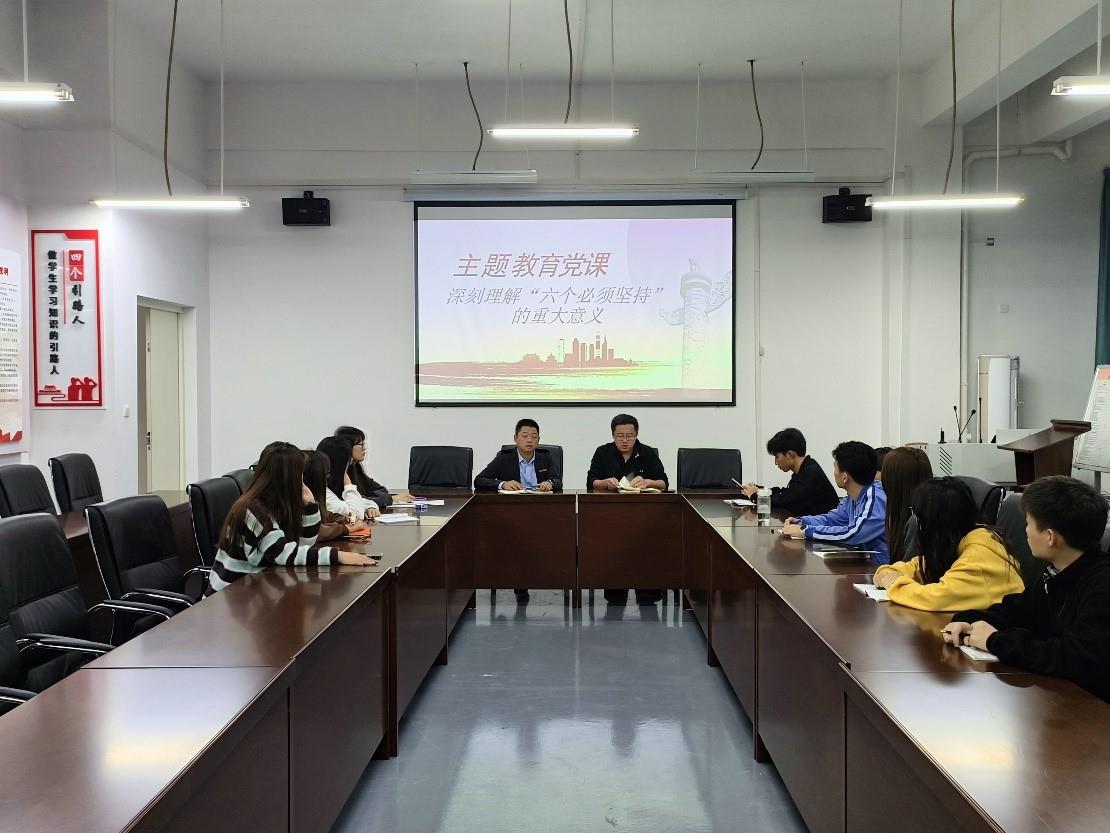为深入学习贯彻党的二十大精神,教育引导学生深刻学习领会习近平新时代中国特色社会主义思想的真理力量和实践伟力,持续加强党的创新理论武装,12月5日下午,工商管理系在工商楼南301召开一场以《深刻理解“六个必须坚持”的重大意义》为题的主题教育党课。