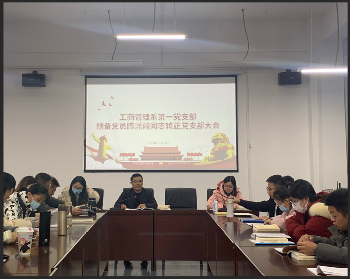 12月26日下午,在工商楼301会议室召开陈潇闹同志预备党员转正支部大会。